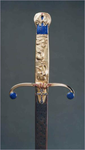Bronze doré, lame en acier, fourreau en cuivre, Lapis