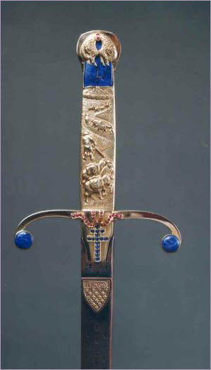 Gold Gilt Bronze, Steel Blade, Embossed Copper Sheath,